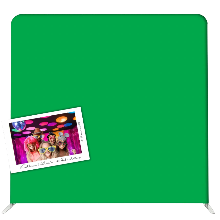 Mit dem Vorher-Nachher-Slider siehst du, wie aus einer einfachen Greenscreen-Wand ein beeindruckendes Hintergrundbild wird. Perfekt für kreative, individuelle Erinnerungen! 📸